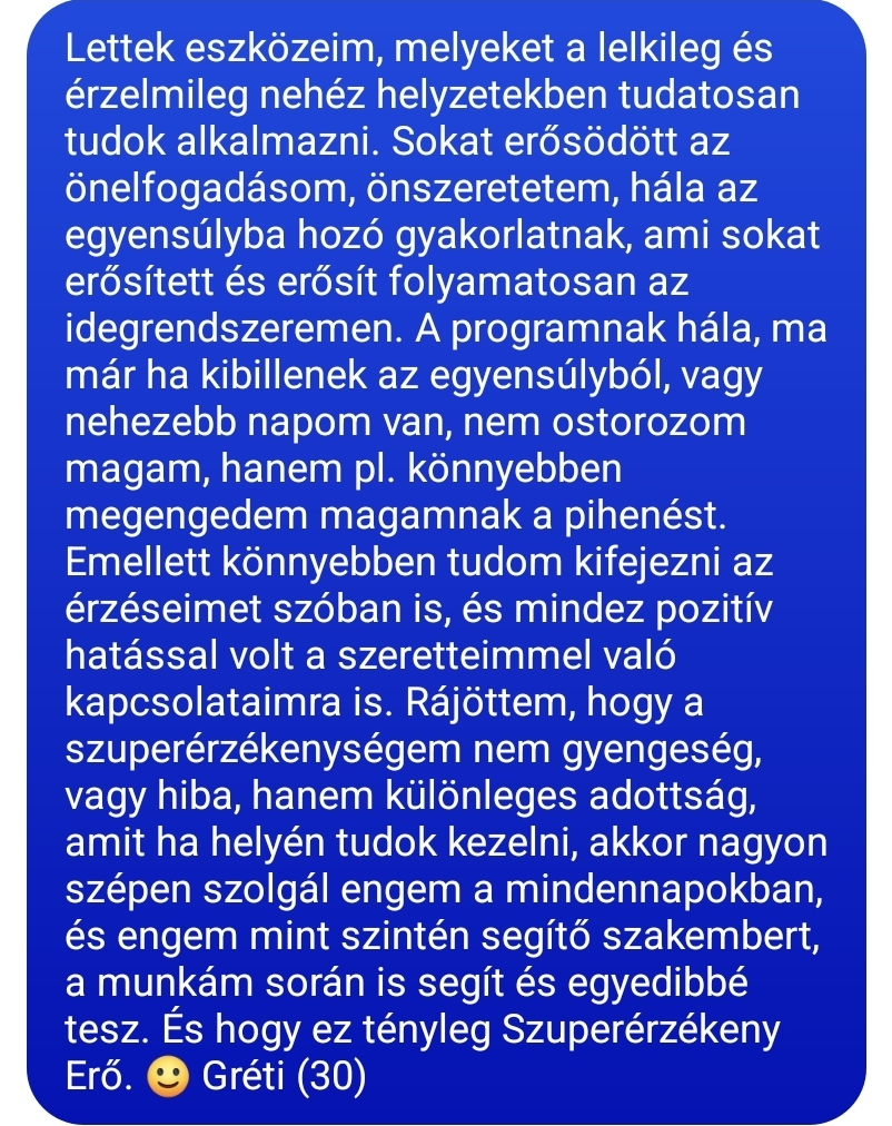 Ezt a programot olyan szuperérzékenyeknek hoztam létre, akik szeretnék egyensúlyba hozni és stabilizálni a szuperérzékeny idegrendszerüket a harmonikusabb kapcsolatokért és hétköznapokért.